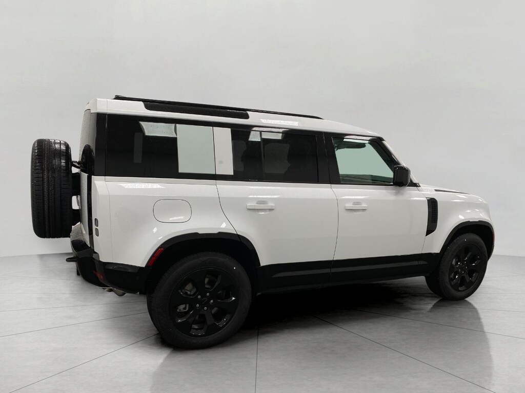 Fuji White 2026 Land Rover Defender 110 X-Dynamic SE AWD 8-Speed Automatic 3.0L I6 12-Way Heated and Cooled Electric Memory Front Seats, 15 Speakers, 4-Wheel Disc Brakes, ABS brakes, Air Conditioning, Alloy wheels, AM/FM radio: SiriusXM, Apple CarPlay & Android Auto, Auto High-beam Headlights, Auto tilt-away steering wheel, Auto-dimming door mirrors, Auto-dimming Rear-View mirror, Automatic temperature control, Brake assist, Bumpers: body-color, Compass, Delay-off headlights, Driver door bin, Driver vanity mirror, Dual front impact airbags, Dual front side impact airbags, Electronic Stability Control, Exterior Parking Camera Rear, Four wheel independent suspension, Front anti-roll bar, Front Bucket Seats, Front Center Armrest, Front dual zone A/C, Front fog lights, Front reading lights, Fully automatic headlights, Garage door transmitter: HomeLink, Heated door mirrors, Heated front seats, Heated steering wheel, Illuminated entry, Low tire pressure warning, Memory seat, Navigation system: Connected Navigation PIVI Pro, Occupant sensing airbag, Outside temperature display, Overhead airbag, Overhead console, Panic alarm, Passenger door bin, Passenger vanity mirror, Power door mirrors, Power driver seat, Power moonroof, Power passenger seat, Power steering, Power windows, Radio data system, Radio: Meridian Surround Sound System, Rain sensing wipers, Rear anti-roll bar, Rear fog lights, Rear reading lights, Rear seat center armrest, Rear window defroster, Rear window wiper, Remote keyless entry, Resist Seat Trim, Security system, Speed control, Speed-sensing steering, Speed-Sensitive Wipers, Split folding rear seat, Steering wheel memory, Steering wheel mounted audio controls, Tachometer, Telescoping steering wheel, Tilt steering wheel, Traction control, Trip computer, Variably intermittent wipers, Ventilated front seats, Weather band radio, Wheels: 20 Satin Dark Grey Style 5094.